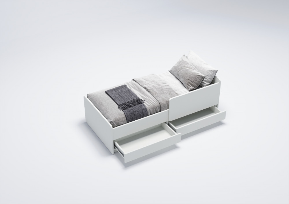 Две выдвижных вместительных ящика, оборудованных телескопическими направляющими с фиксаторами, предоставляют дополнительное пространство для хранения игрушек, одежды и других детских принадлежностей. Это позволяет поддерживать порядок в комнате и облегчает процесс уборки.